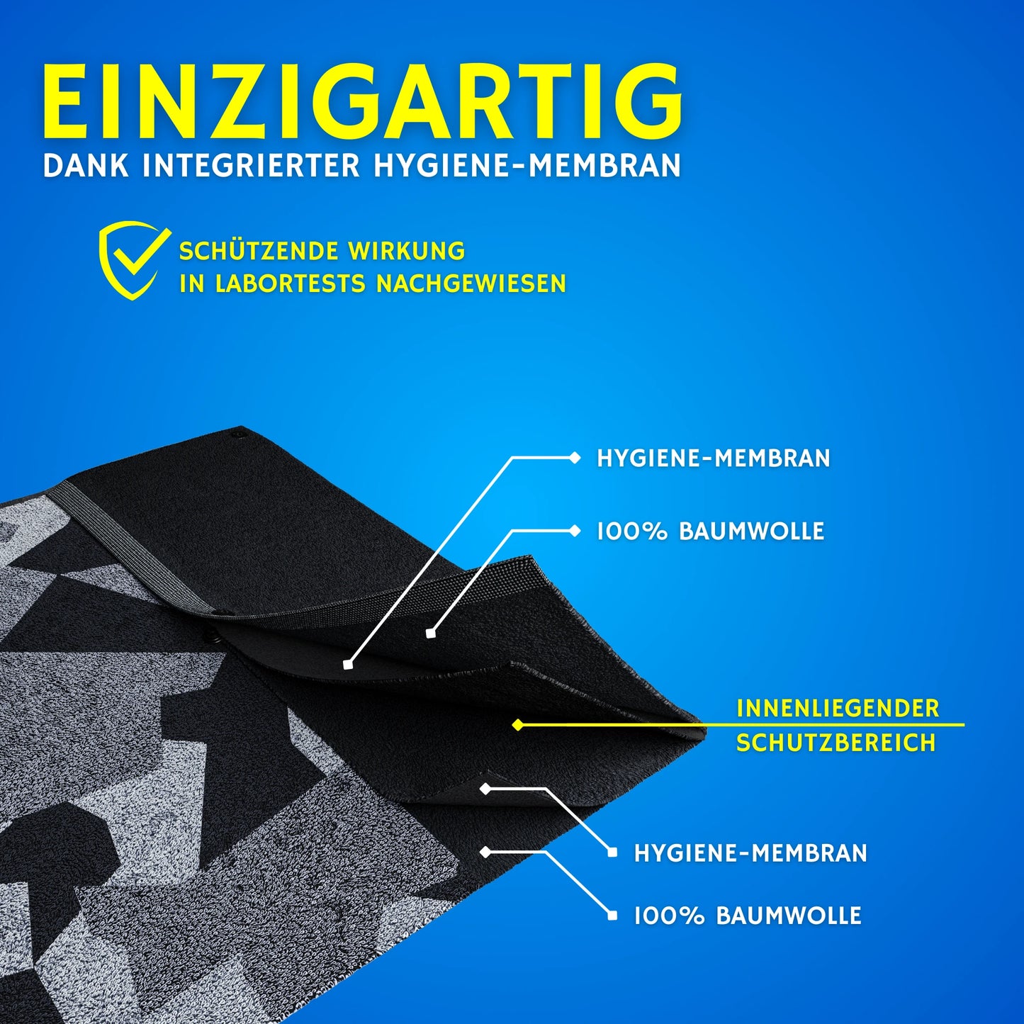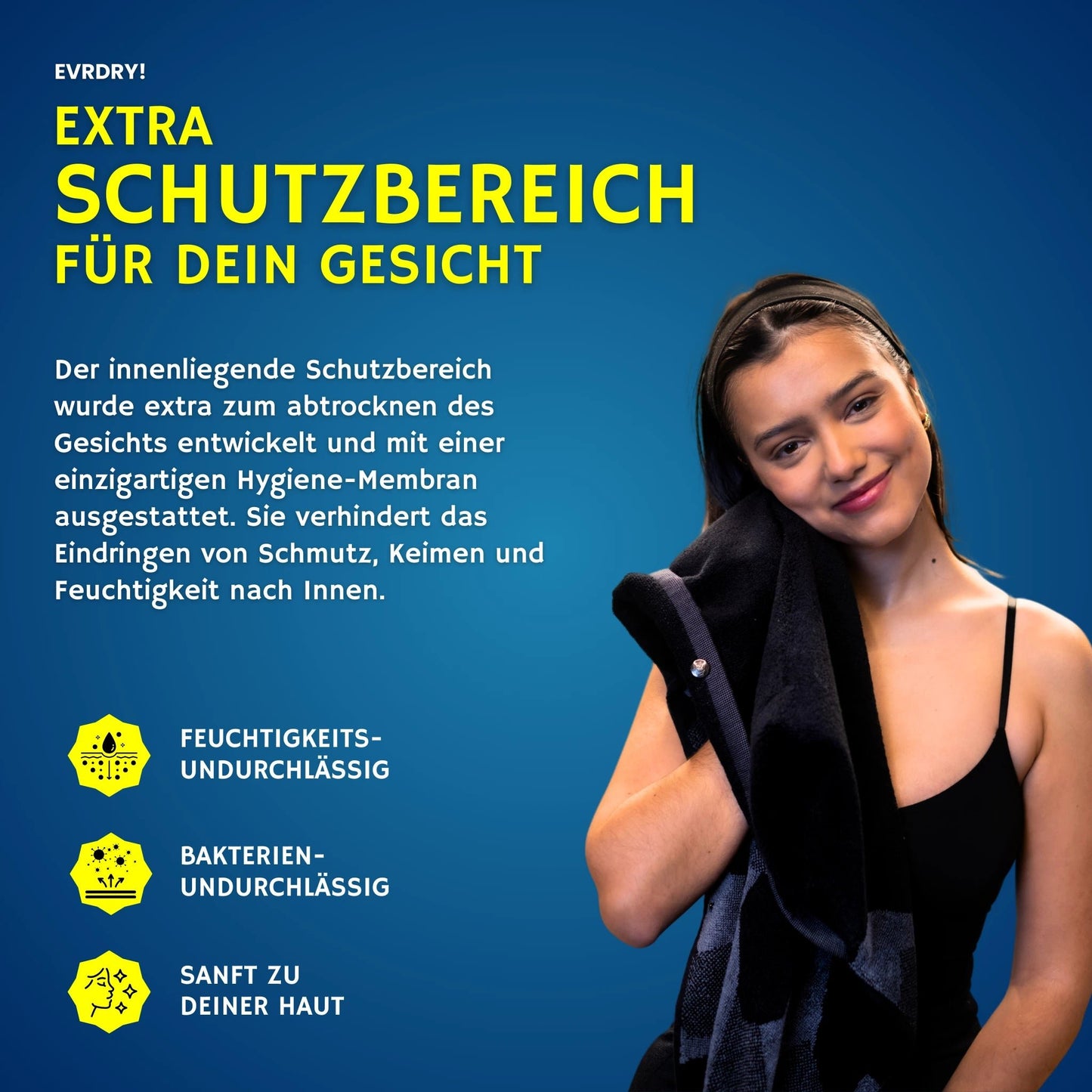 EVRDRY! hat die Lösung: ein separater Gesichtsbereich mit integrierter Hygiene-Membran. Sauber, durchdacht und unvergleichlich – für dein bestes Workout-Feeling.