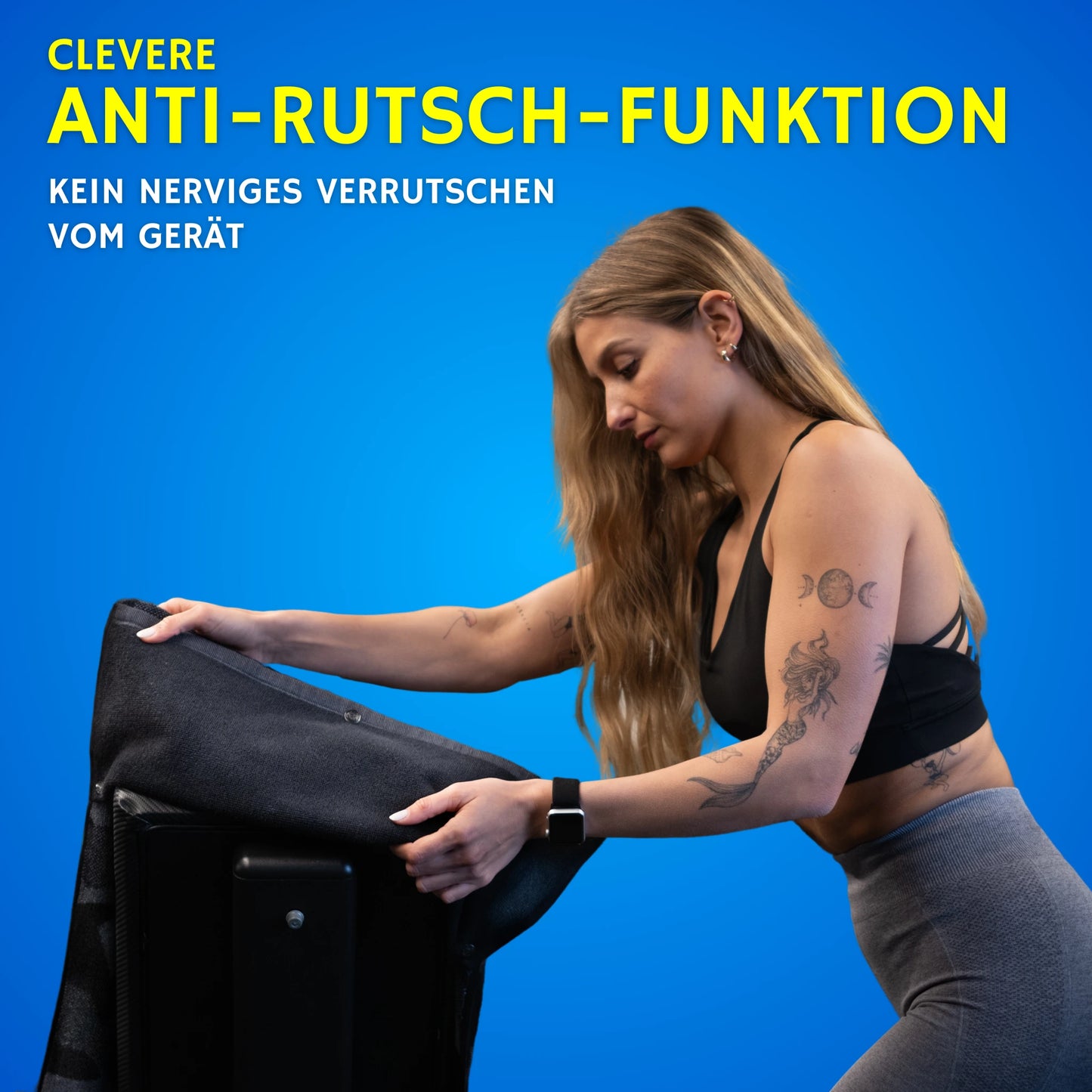 EVRDRY! passt sich deinem Training an. Dank der cleveren Anti-Rutsch-Funktion bleibt das Handtuch auf allen gängigen Studiogeräten sicher an Ort und Stelle – kein Verrutschen, kein Nachjustieren.